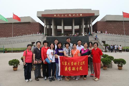 为积极响应北京大学及医学部关于认真贯彻学习党的十八大精神的相关文件要求,激发基层党组织的凝聚力和战斗力。2013年5月25-26日,医学部研究生院党支部利用周末,组织全体党员开展了“落实十八大,共话中国梦,为党旗增辉”主题党日活动。活动内容为赴山东枣庄台儿庄大战纪念馆、运河古城以及微山湖铁道游击队作战旧址参观,追寻抗战胜利的足迹,缅怀英烈的抵抗外敌、保家卫国的事迹。在赴台儿庄之前,支部组织预备会议,布置党员、群众对1938年发生在台儿庄这场历时月余的著名的战役进行学习。