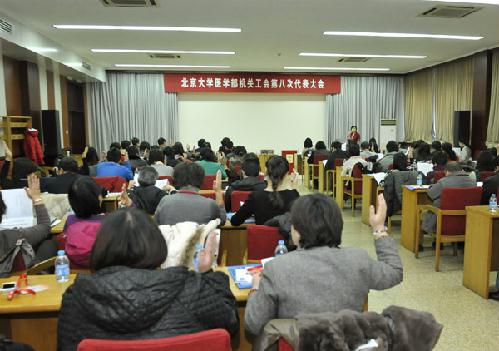 2013年11月28日下午,机关工会在会议中心206会议室召开北京大学医学部机关工会第八次代表大会。医学部党委副书记、工会主席顾芸、工会常务副主席刘穗燕出席了大会。机关各工会小组根据机关工会分配的名额和有关要求推选出的73名代表参加了会议。大会由机关党委副书记刘文玲主持。