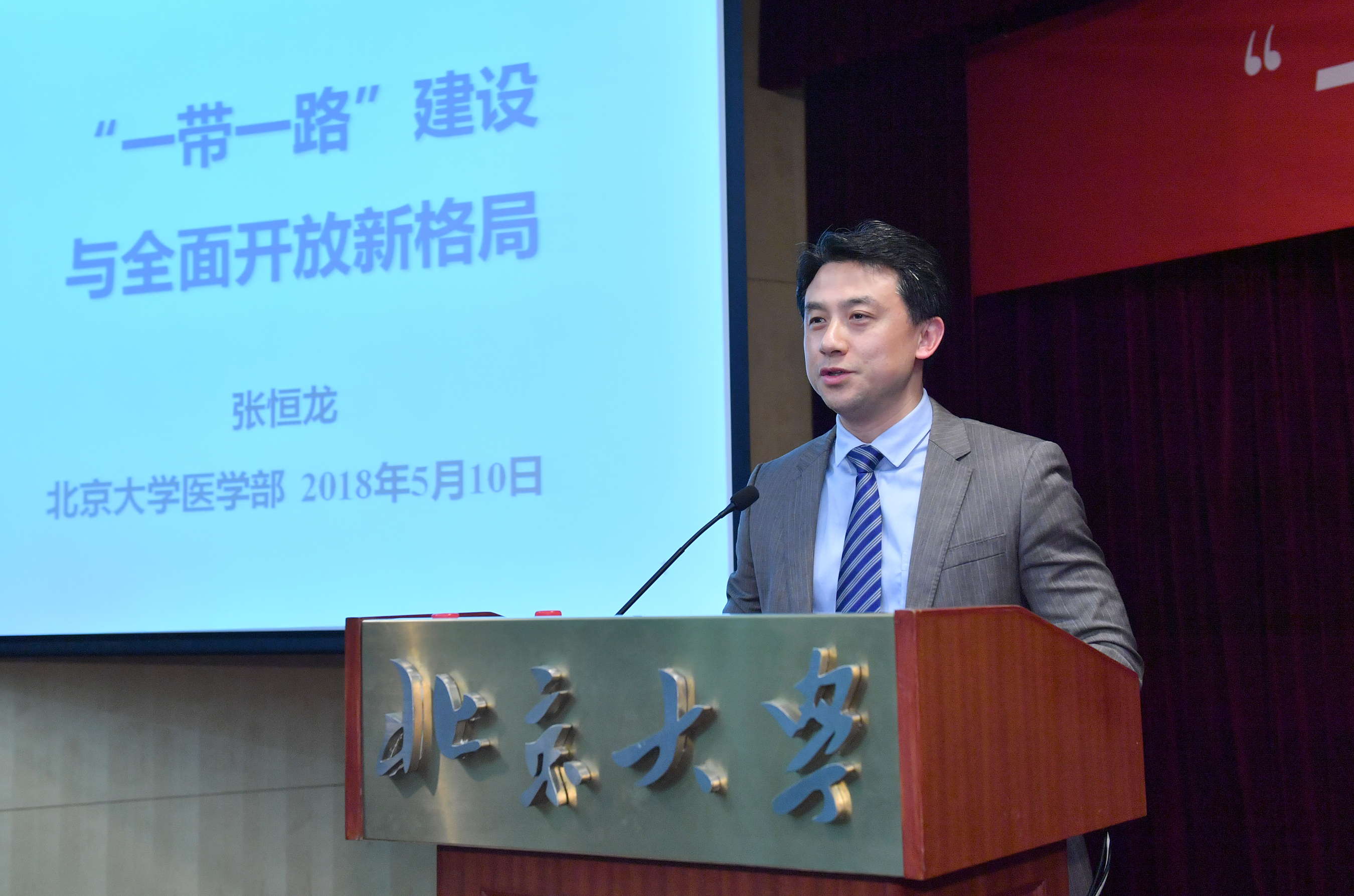 2018年5月10日下午,在医学部教学楼209报告厅,机关党委邀请上海大学经济学院教授、博导,高等研究院党委书记、副院长,上海合作组织公共外交研究院副院长张恒龙教授,为机关和直属单位职工做了“一带一路”建设与全面开放新格局专题辅导报告。机关和直属单位近200人参加会议。报告会由机关党委书记郭艾花主持。